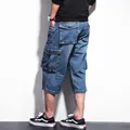Casual Mens Jeans Shorts Summer Big Pockets Shorts Denim Skateboard pants for Rappers Mens Loose ba