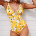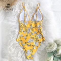 Cheap Price CUPSHE Sexy Yellow Pear Blossom Floral Print OnePiece Swimsuit 2020 Women Boho Bathing Suits Swimw with Free Shipping Worldwide!