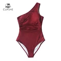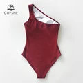 CUPSHE Solid Burgundy OneShoulder OnePiece Swimsuit Sexy Padded Cups Women Monokini 2020 Girl Bea
