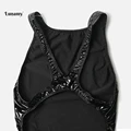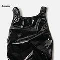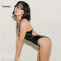 Limited Price Lunamy 2019 Sexy Leotards PU Black Glossy Body Suit High Cut One Piece Swimwear Women Bodysuit Shin with Free Worldwide Shipping!