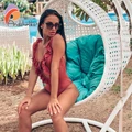 Special Offer Andzhelika Women Onepiece Swimsuit Solid Falbala Sexy V neck Mesh Ruffle Swimwear Monokini Ladies with Free Worldwide Shipping!