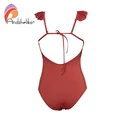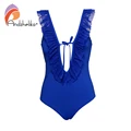Andzhelika Women Onepiece Swimsuit Solid Falbala Sexy V neck Mesh Ruffle Swimwear Monokini Ladies