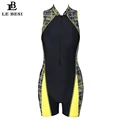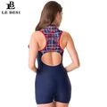 Discount Price LEBESI 2019 New Women One Piece Swimsuit Professional Sports Beachwear Zipper Print Shorts Surf sui with FREE Worldwide Shipping!