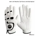 Mens Golf Gloves with Ball Marker Left Hand Lh for RightHanded Golfer All Weather Grip Fit Small