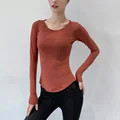 Women Spring Long Sleeves O Neck Running Tshirts High Elastic Soft Yoga Tops Slim Body Build Fitne