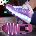 Best Price Kids LED Lgiht Sneakers with Singledouble Wheels Girl Boy Roller Skate Shoes Adults Luminous USB C with Free Shipping Worldwide!