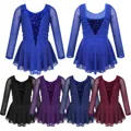 Kids Girls Gym Party Rhinestone Keyhole Back Figure Ice Skating Professional Roller Skating Dancewear Ballet Dance Leotard Dress