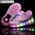 New Child USB Charging Girls Boys LED Light Roller Skate Shoes For Children Kids Sneakers With Wheels pink Grey Black one wheels