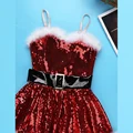 Girls Ballet Leotard Dress Christmas Santa Dance Costume Sequins Figure Ice Skating Roller Skating