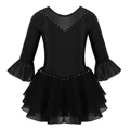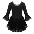 Special Price Kids Girls Shiny 34 Flare Sleeves Mesh Splice Rhinestone Figure Ice Skating Roller Skating Ballet with Free Worldwide Shipping!