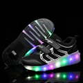 Kids LED Flashing Double Roller Skate Shoes Children Glowing Running Shoes Luminous Sneakers Women