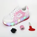 Cheap Kids Glowing Sneakers with wheels Led Light up Roller Skates Sport Luminous Lighted Shoes for Kids Boys Pink Black Pink
